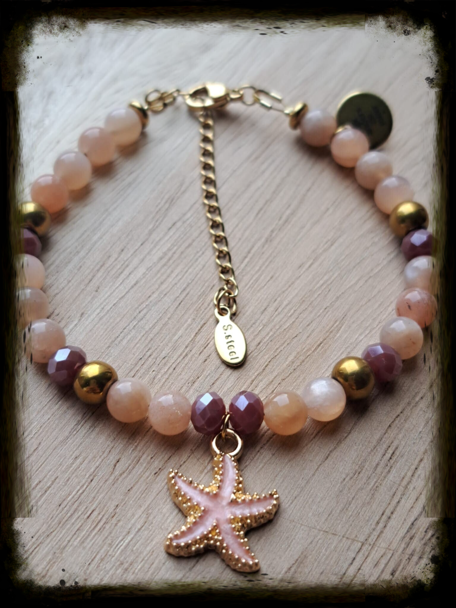 De zachte beige tinten in deze armband staan voor rust, balans en het hervinden van stabiliteit. De bronsgouden accenten herinneren eraan dat zelfs na een moeilijke periode er weer warmte en licht kan ontstaan. De diep aubergine facetkralen symboliseren de kracht die vaak pas zichtbaar wordt nadat je iets hebt overwonnen.